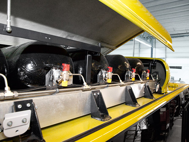 - Autobús de 12 metros (clásico) con 6 a 9 cisternas o 4 cisternas longitudinales grandes